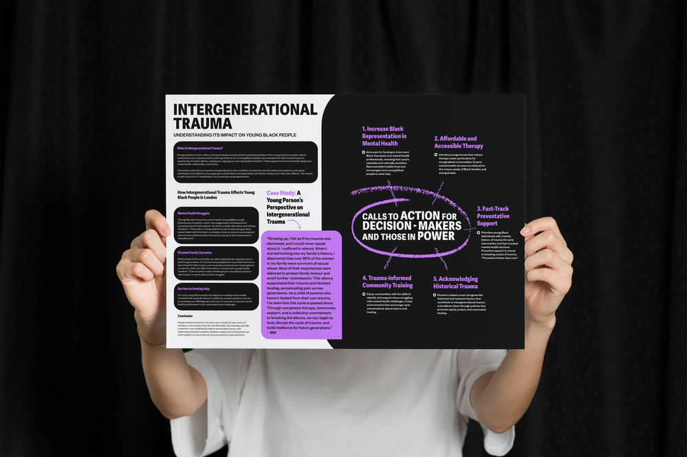 The aim was for the manifesto and posters to feel striking and impactful at first glance, minimal yet high-contrast, grabbing attention while carrying a youthful, personal touch. This was important because the content was curated directly by young people, and the design needed to reflect their voice.