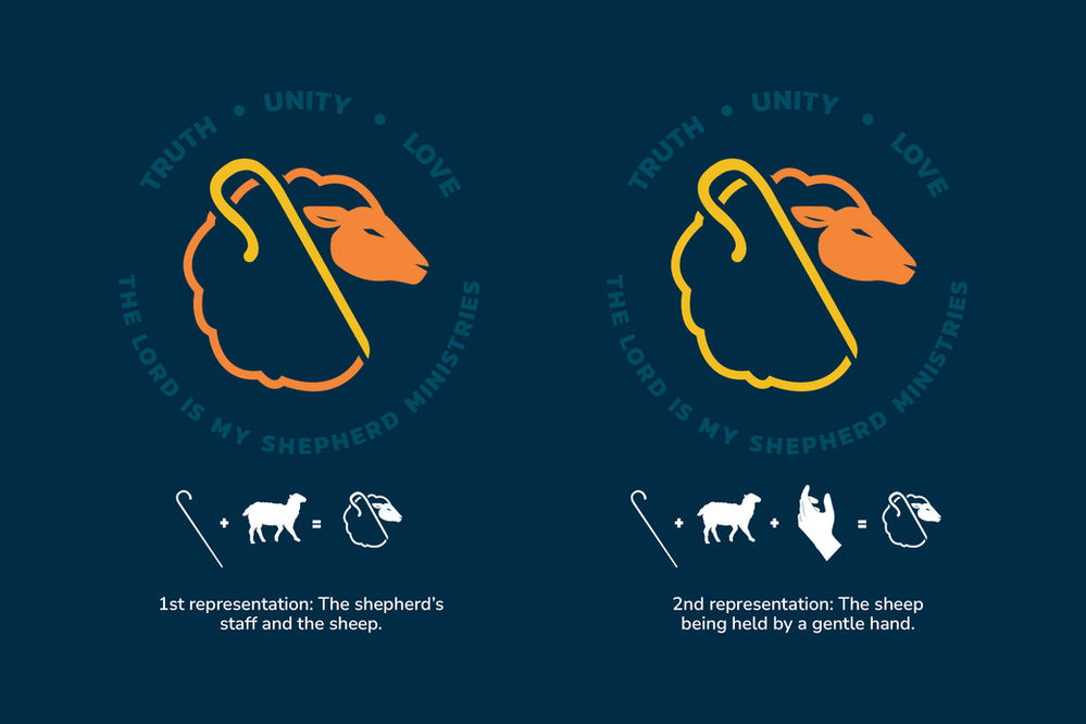 The final design brings these elements together in a subtle but meaningful way. The logo not only integrates the staff and the sheep, but it also forms a shape that resembles a sheep being gently held, cupped within a caring hand. This dual representation reinforces the church’s values of love, truth, and unity while also reflecting the heart of their name, The Lord Is My Shepherd.